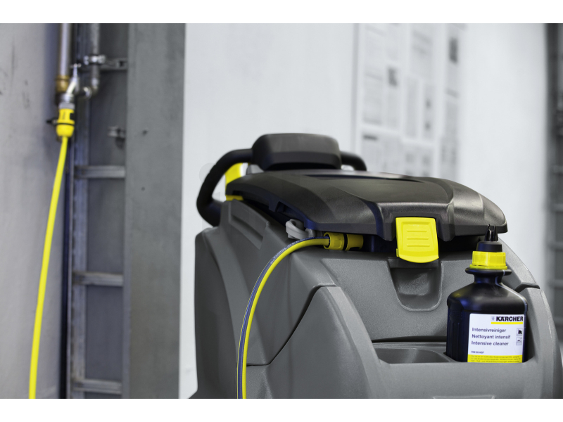 Ručně vedený podlahový mycí stroj s odsáváním KÄRCHER B 60 W Bp+R65+Rinse+Autofil s pohonem pojezdu a systémem KIK nabízí komfort i snadnou a bezpečnou manipulaci. Kartáčová hlava R 65 (pracovní šířka 65 cm) a počet otáček kartáčů až 600 ot./min předurčuje stroj pro čištění strukturovaných podlah s plošným výkonem až 2.500 m². Přítlak kartáčů je nastavitelný, přičemž hlavu i kartáče rychle namontujete i vyměníte. Systémem klíčů KIK jsou udělována přístupová práva k zamezení chybných kroků obsluhy.Stupeň eco!efficiency zásadně prodlouží dobu chodu baterie a systém vyplachování nádrže zjednoduší čištění nádrže na špinavou vodu po vyčištění podlahy. To vše završuje funkce Auto Fill pro jednoduché a časově nenáročné plnění nádrže na čistou vodu. Navíc se sací lišta tvaru V o pracovní šířce 900 milimetrů postará o odsávání nečistot beze zbytků i při jízdách v zatáčkách.