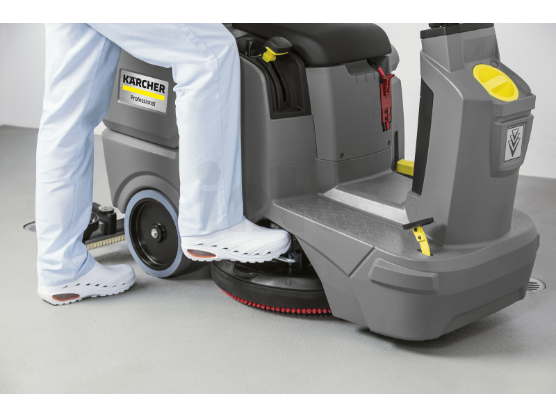 - Robustní konstrukce s integrovanou hlavou kotoučových kartáčů. Velký plošný výkon díky velké pracovní šířce. Výměna kartáčů sešlápnutím pedálu.
