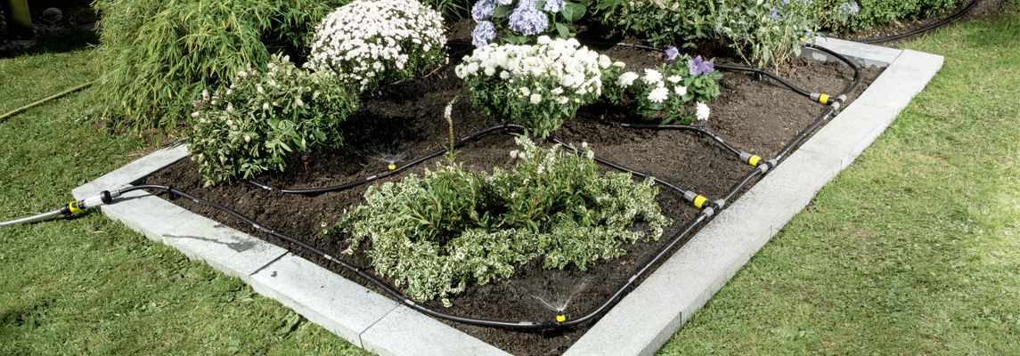 Sada pro zavlažování hrnkových rostlin KRS® na terasy: optimální pro efektivní zavlažování až 15 květináčů. Hadicovým systémem a kapénkovými manžetami lze zalévat květináče i truhlíky.