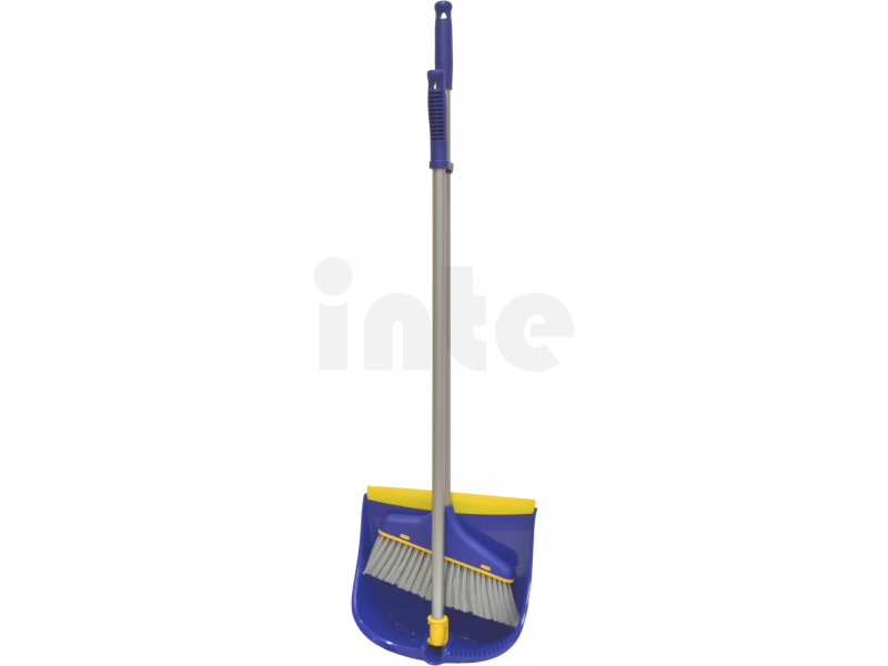 Pro pohodlné zametání. Plastová lopatka s gumovou lištou široká 26 cm, hůl s držadlem 75 cm, sklopné spojení.