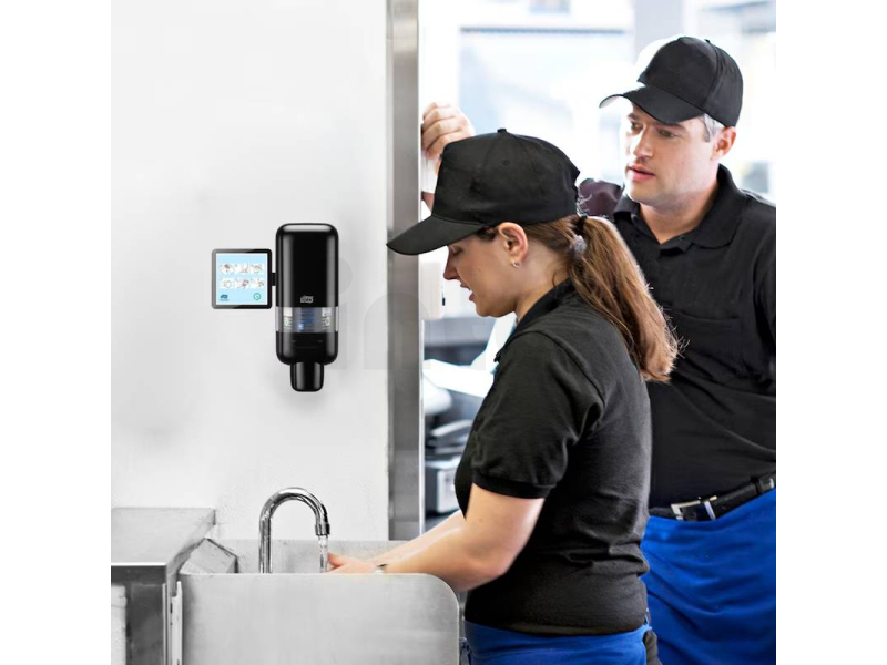 Instalace držáku je jednoduchá a rychlá, což umožňuje flexibilní a efektivní komunikaci přímo na místě. Díky černému designu se držák snadno začlení do moderních interiérů a stylově doplňuje zásobníky Tork. Tento nenápadný, ale účinný nástroj významně přispívá k dodržování hygienických standardů v každém provozu.