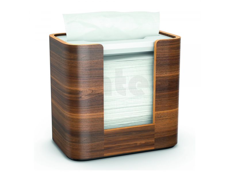 Tento elegantní zásobník, vyrobený z přírodních materiálů, dávkuje ubrousky po jednom, zvyšuje hygienu a v porovnání s tradičními zásobníky na ubrousky snižuje spotřebu minimálně o 25 %.