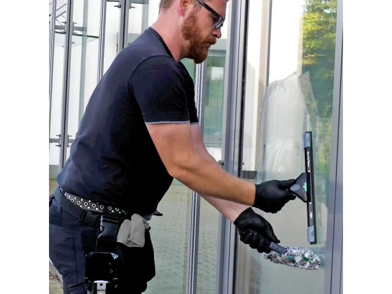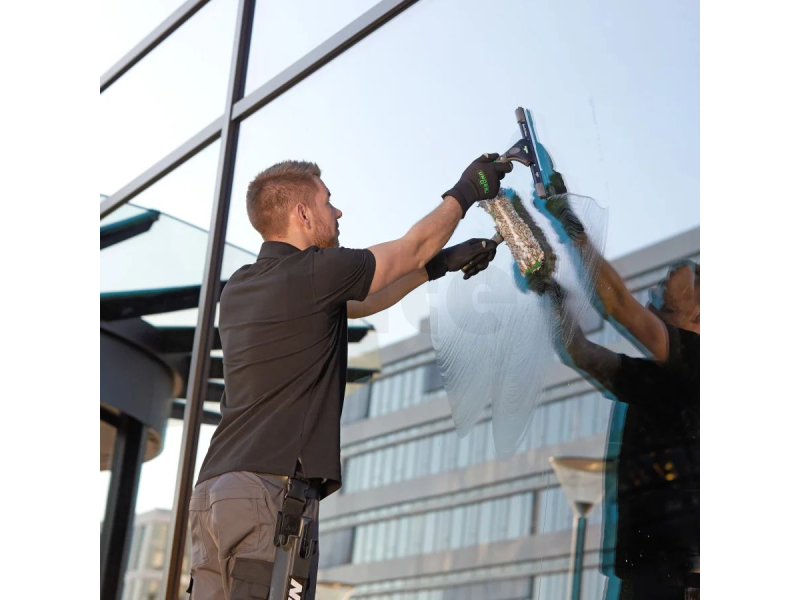 Tajemství úspěšného čističe skel a budov spočívá v jeho nářadí – a především ve stěrce. Protože když stěrka klouže po povrchu skla jakoby sama, je práce čističe oken téměř hotová. Stěrka na okna ErgoTec NINJA byla speciálně vyvinuta tak, aby vyhovovala potřebám profesionálů. Jeho extrudovaná high-tech hliníková lišta T6 perfektně drží stěrku i na skle. Vysoce výkonná guma je fixována a napínána pomocí chytrého klipového mechanismu. Zvláštnost stěrače ve značkové kvalitě: jeho speciální sklon hlavy o 40 stupňů a otočná funkce s aretačním mechanismem. Protože každý profesionální čistič oken ví: Záleží na rozložení tlaku! Proto je to možné U profesionální okenní stěrky ErgoTec NINJA si můžete vybrat mezi dvěma výškovými polohami gumy stěrky. Kromě toho lze v závislosti na zakázce připevnit lišty stěračů v různých délkách od 20 cm do 105 cm. I velká čela oken, prosklené vstupní prostory nebo výlohy lze profesionálně vyčistit v nejkratším možném čase s minimální námahou.