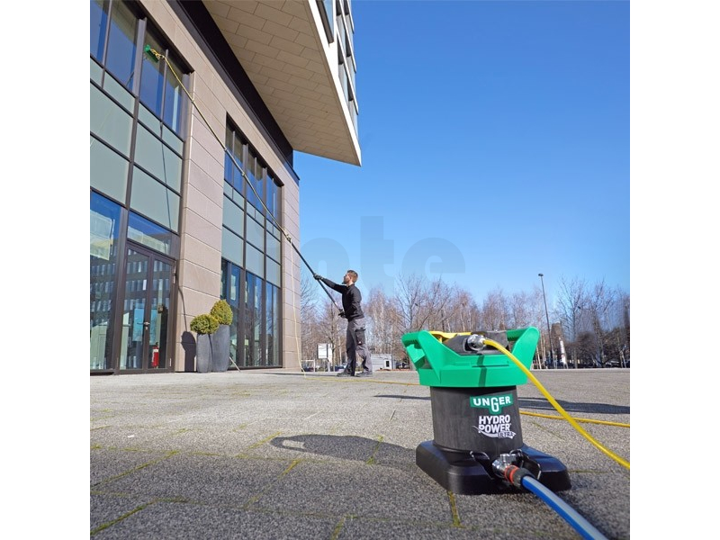 UNGER HydroPower ™ Ultra Set S s hliníkovou násadou umožňuje ještě snazší a efektivnější čištění díky technologii FloWater 2.0. Pryskyřice zajišťuje lepší průtok vody skrz celou nádrž a tím optimalizuje použití pryskyřice. Každé balení Ultra Harz obsahuje předem porcované množství UNGER Premium iontové výměnné pryskyřice s novou formulací, která byla zdokonalena pro čištění skla.