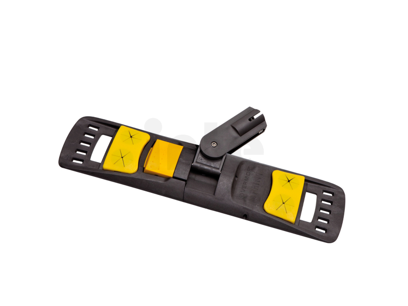 Je vybaven patentovaným nášlapným tlačítkem, které umožňuje jednoduché otevírání a zavírání – snadná manipulace šetří čas a námahu. Otvory v držáku umožňují aplikaci mycího roztoku přímo na mop, což podporuje hygienický a efektivní úklid. Velká kontaktní plocha zaručuje důkladné čištění i větších prostor. Držák je vhodný pro uživatele všech výšek a lze jej zakoupit ve dvou různých velikostech.