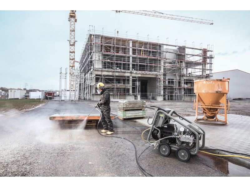 Ideální pro univerzální použití ve stavebnictví a dalších průmyslových aplikacích: Náš univerzální HD 9 / 100-4 Cage Classic ultra vysokotlaký čistič z kompaktní třídy UHP. Srdcem stroje je extrémně výkonné průmyslové vysokotlaké čerpadlo od společnosti WOMA s vysokou objemovou účinností. HD 9/100-4 je vybaven aktivační pistolí obtoku a má pracovní tlak 1 000 bar a průtok 900 l vody za hodinu, čímž rychle a spolehlivě odstraňuje i ty nejodolnější nečistoty.