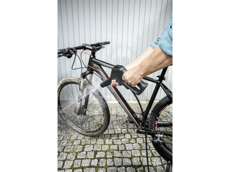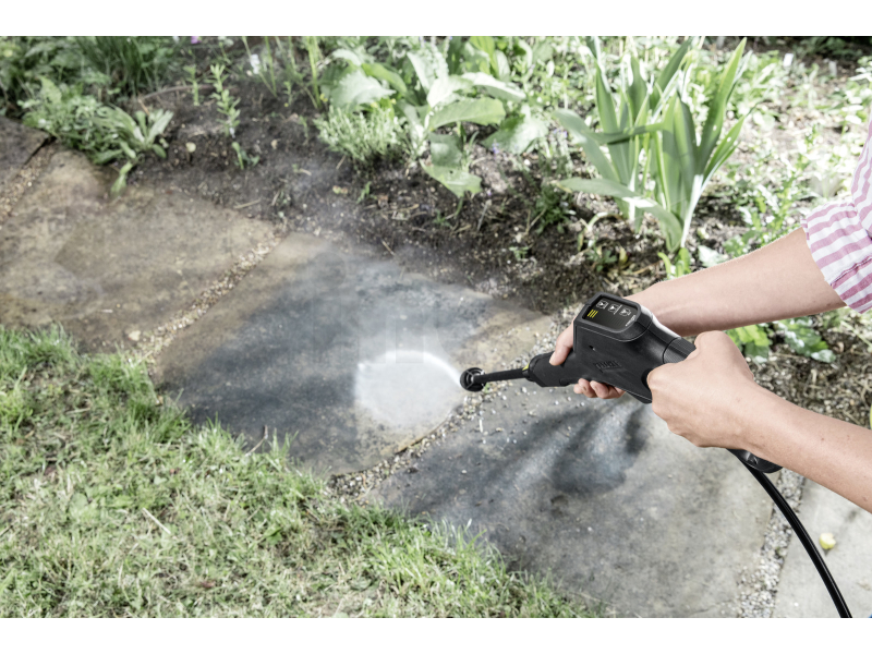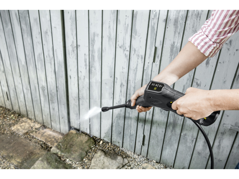 - Různé pracovní nástavce umožňují 3 tlakové stupně pro optimální čištění různých povrchů. Displej na vysokotlaké pistoli umožňuje jednoduchou kontrolu zvoleného stupně tlaku.