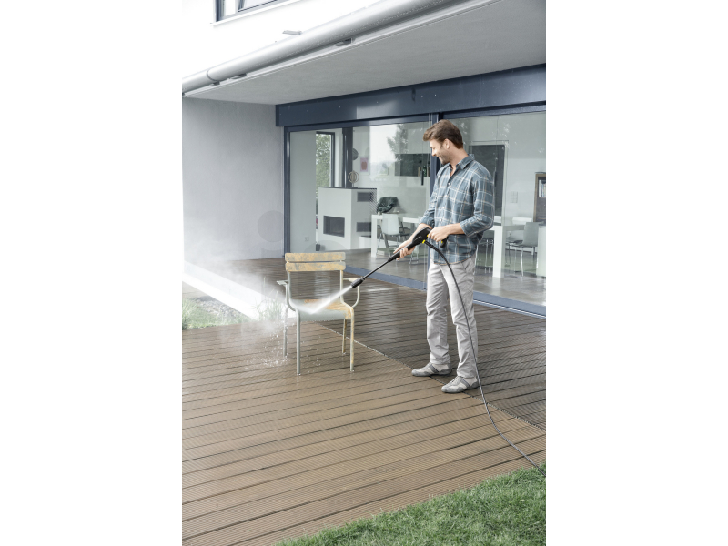 Tlaková myčka K 2 Power Control s mobilní aplikací Kärcher Home & Garden promění každého uživatele v odborníka na čištění. Průvodce čištěním pomáhá uživateli s praktickými tipy a triky při každém úkolu čištění. Aplikace také nabízí komplexní službu včetně informací o zařízení. Zařízení je vybaveno vysokotlakou pistolí a pracovními nástavci s adaptérem Quick Connect. Úroveň tlaku lze nastavit přímo na nástavci Click Vario Power - pro maximální kontrolu při každém čištění. Zařízení má také výškově nastavitelnou teleskopickou rukojeť pro pohodlný transport a skladování, sací hadici pro snadnou aplikaci čisticích prostředků, praktické držáky na příslušenství, vysokotlakou pistoli a kabel, stejně jako pětimetrovou hadici.