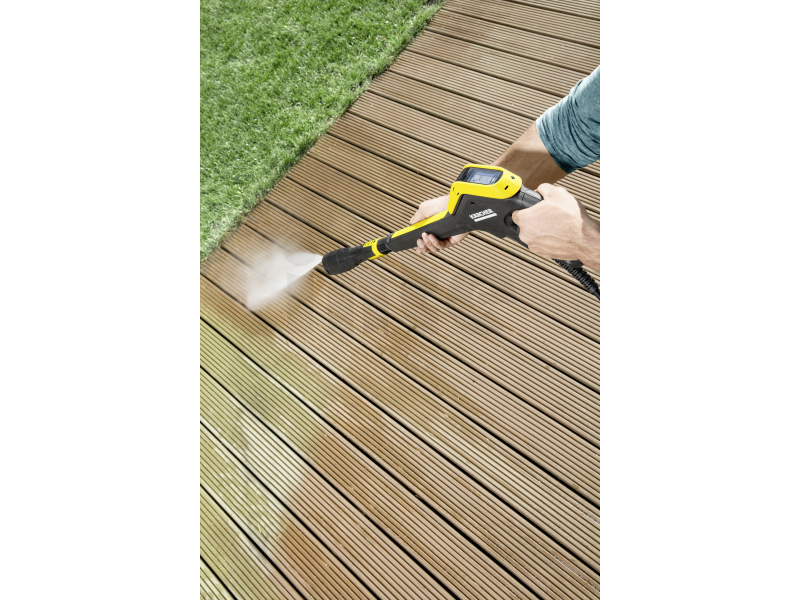 • Spouštěcí pistole s LCD displejem a tlačítky pro regulaci tlaku nebo dávkování čisticího prostředku. Obsahuje režim Boost pro extra výkon pro boj s odolnou špínou. Rotující nástavec Multijet 3 v 1 obsahuje tři různé trysky pro snadnou výměnu. Adaptér pro snadné upevnění vysokotlaké hadice a příslušenství.