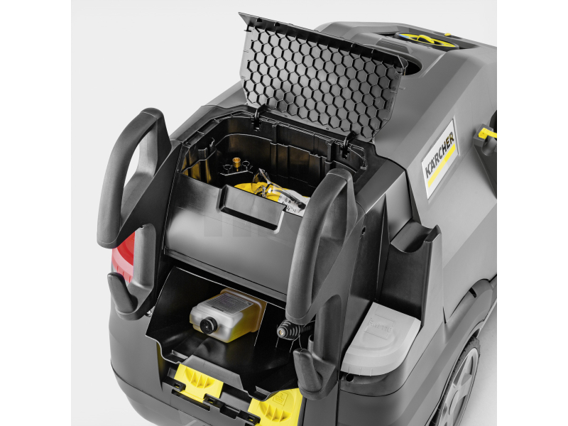 Vysokotlaký čistič KÄRCHER HDS 13/20-4 S s ohřevem jako jeden z nejvýkonnějších strojů třídy super přesvědčí nejlepšími výsledky čištění v nejnáročnějších provozních podmínkách. Vysoce kvalitní komponenty, jako je nízkootáčkový, 4pólový vodou chlazený elektromotor a robustní 3pístové axiální čerpadlo s keramickým pístem, poskytují maximální kvalitu, zatímco úsporný režim eco!efficiency zajišťuje maximální účinnost. Velmi snadná obsluha a údržba, ergonomický design a snadná přeprava - HDS 13/20-4 S má vysoké hodnocení i z hlediska uživatelské přívětivosti. To v neposlední řadě podtrhuje energeticky úsporná spouštěcí pistole EASY!Force Advanced se servopohonem a 1050 milimetrů dlouhým pracovním nástavcem s patentovanou technologií trysek. Bohatou výbavu stroje doplňuje optimalizovaná konstrukce hořáku, 2 nádrže na čisticí prostředky, rozsáhlá bezpečnostní technologie, časově úsporné díky systému EASY!Lock a důmyslné možnosti ukládání příslušenství.