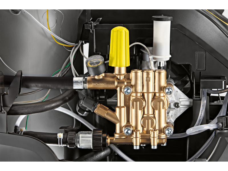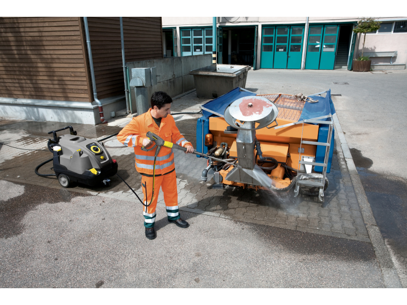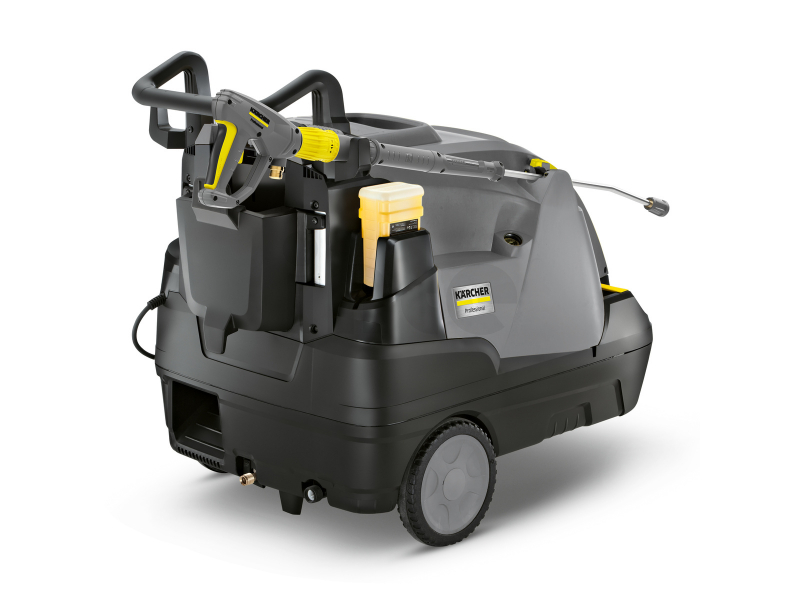Úsporný, výkonný a pohodlný: HDS 6 / 14-4 C je jednofázový vysokotlaký čistič, který čistí pomocí horké vody ve třídě HDS Compact se 4-pólovým, vodou chlazeným elektromotorem a nabízí širokou škálu působivých funkcí. Unikátní režim ekologické účinnosti zajišťuje efektivní a hospodárný provoz. Zatímco vysokotlaká pistole EASY! Force využívá zpětnou sílu vysokotlakého paprsku ke snížení přidržovací síly na nulu, rychle uvolňovací spojky EASY! Lock umožňují manipulaci, která je pětkrát rychlejší než u konvenčních šroubových spojů, bez ztráty robustnosti nebo dlouhověkosti. Pomocí Servo Control můžete nastavit průtok vody a tlak přímo na spouštěcí pistoli, aniž byste ji museli nastavovat. Praktické ovládání jediným tlačítkem a praktické úložné prostory pro trysky a další příslušenství a nástroje ukazují sofistikovaný koncept obsluhy. Stroj je také vybaven velkými koly a řídicím válečkem, který zajišťuje vysokou úroveň mobility, a je vybaven robustním podvozkem s integrovanými nádržemi na palivo a čisticí prostředky.