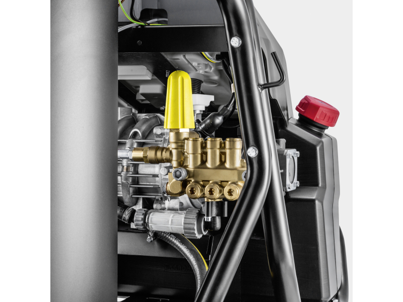 - Robustní čerpadlo s klikovým hřídelem a osvědčenou kvalitou Kärcher. Osvědčená bezpečnostní technologie, jako je tepelný a bezpečnostní ventil a vodní filtr.