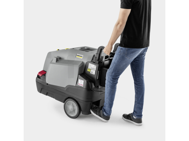Technologie horké vody efektivně odstraňuje mastnoty a nečistoty, čímž snižuje potřebu detergentů. Přesné dávkování čisticího prostředku z 15,5litrové nádrže spolu s intuitivním ovládáním jedním tlačítkem usnadňuje práci v jakémkoli prostředí. Systém SDS Soft snižuje vibrace, zatímco robustní konstrukce s velkými koly a řídicím kolečkem zajišťuje snadnou manipulaci a mobilitu stroje.