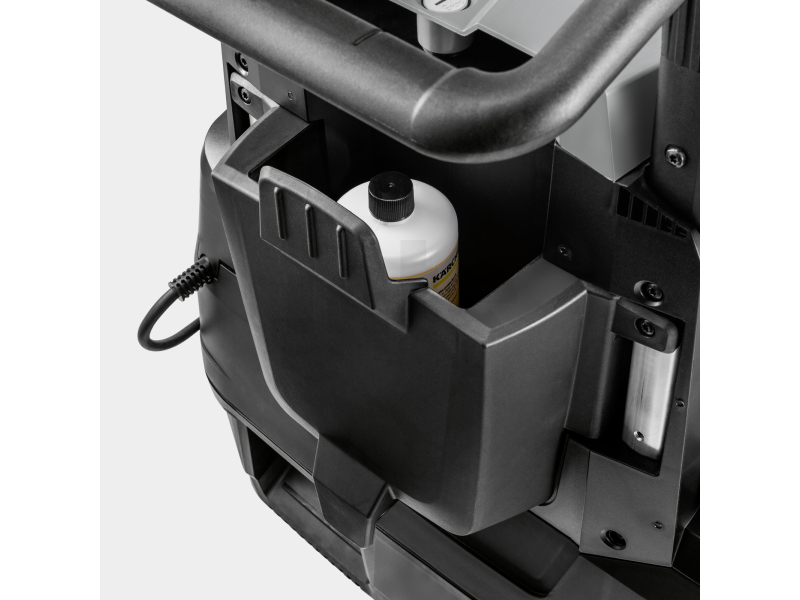 Robustní podvozek chrání stroj před nárazy a nabízí vysokou mobilitu díky velkým kolům a řídicímu kolečku. Integrované úložné prostory a madla usnadňují manipulaci a skladování. Tento čistič je ideální pro široké spektrum aplikací, jako je čištění vozidel, strojů, fasád, sportovišť, čerpacích stanic nebo výrobních zařízení.