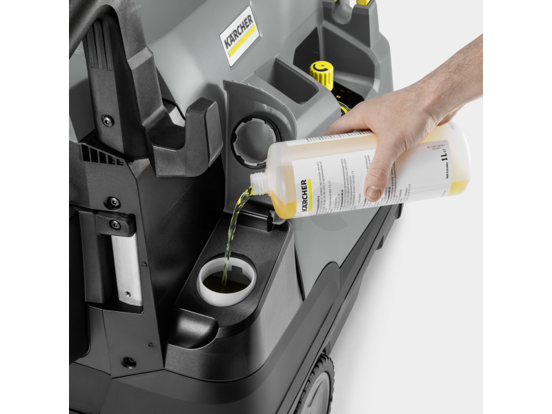 Vysokotlaký čistič KÄRCHER HDS 7/16 C přináší špičkový výkon díky 3fázovému vzduchem chlazenému motoru a robustnímu axiálnímu čerpadlu se třemi keramickými písty, které generuje vysoký tlak a stabilní výkon i při dlouhodobém provozu. Technologie horké vody zajišťuje účinné odstranění mastnoty, olejů a nečistot, přičemž snižuje spotřebu detergentů, které jsou přesně dávkovány z 15,5litrové nádrže.