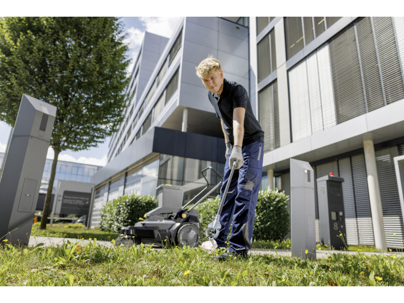 Ručně vedený zametací stroj KM 70/25 C BP 2SB je efektivním a účinným řešením pro úklid tvrdých povrchů v interiéru i exteriéru. Zametací válec a boční kartáče jsou napájeny baterií a výrazně zvyšují komfort práce: uživatelé mohou bez námahy zametat rohy a těžko přístupná místa s výrazně menší potřebou síly. Pěnový filtr s pasivním odsáváním snižuje prašnost a udržuje pracovní prostředí čisté. Zametací válec lze nastavit v šesti stupních a přizpůsobit tak jeho čisticí výkon různým povrchům. Práci usnadňuje praktický systém Home Base na další vybavení, jako jsou kbelíky a sběrače odpadků. Jednoduchá je také údržba, k výměně bočního kartáče a filtru není potřeba žádné nářadí. Bateriová platforma Kärcher Battery Power 36 V poskytuje dostatečný výkon v každé situaci. Vyměnitelná baterie lze vyjmout pro snadnou přepravu. Baterie a nabíječka nejsou součástí dodávky.