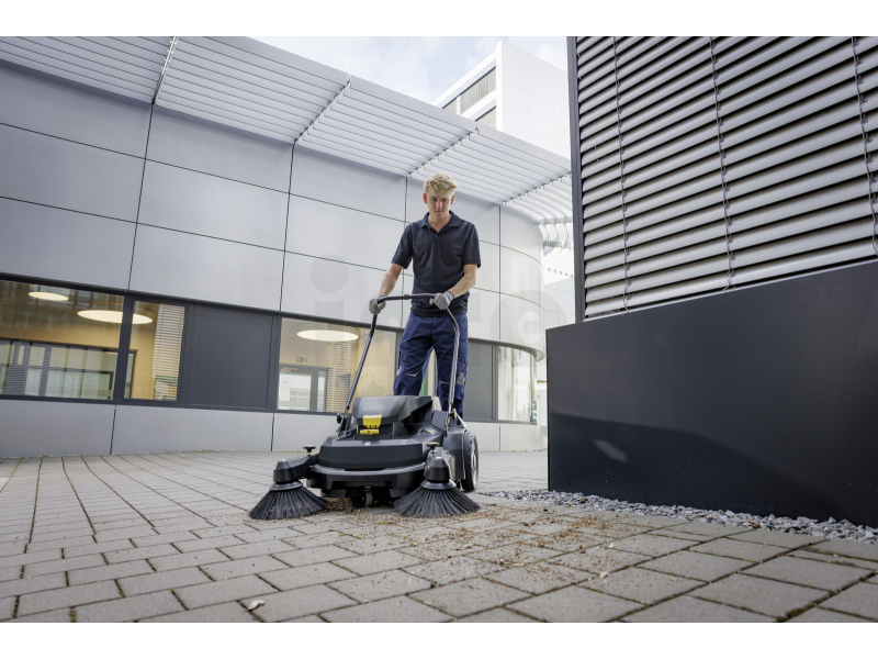 Zametací válec, boční kartáč a ventilátor jsou poháněny baterií z platformy Kärcher Battery Power+ 36 V, která zajišťuje dostatečný výkon a vyšší pracovní komfort. Díky této technologii je možné bez námahy čistit rohy a těžko dostupná místa. Nastavitelný zametací válec s šesti stupni přizpůsobí výkon konkrétním povrchům a zajišťuje optimální výsledky čištění.