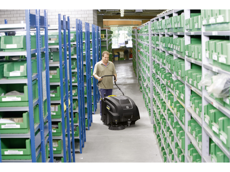 Údržba stroje je jednoduchá a rychlá – výměna filtru nebo zametacího válce nevyžaduje žádné nářadí. Tento model je vhodný pro výrobní haly, sklady, parkoviště, čerpací stanice i komunální prostředí.