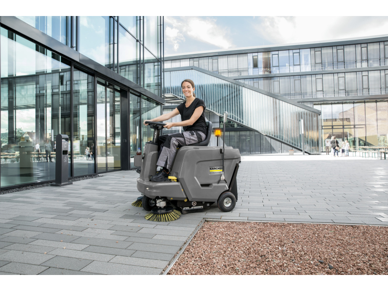 Skvěle vybavený, velmi snadno a bezpečně ovladatelný, obzvláště kompaktní konstrukce - náš zametací stroj KM 85/50 R umí zaujmout ve všech ohledech. Například výkonný lithium-iontový akumulátor s dlouhou životností a kapacitou 80 Ah a příslušná rychlonabíječka jsou již součástí výbavy stroje. Standardem jsou také: rotační boční kartáč s regulací otáček, velký prachový filtr pro bezprašnou práci a indikátor opotřebení hlavního zametacího válce, který je vidět zvenčí. Díky promyšlené kompaktní konstrukci nabízí KM 85/50 R působivou obratnost a manévrovatelnost, a proto je vhodný i pro úklid v úzkých a stísněných prostorách. Kromě toho stroj nabízí jednoduchou koncepci ovládání s praktickými detaily, jako je oscilační válec pro velmi dobré výsledky čištění i na nerovných podlahách nebo čištění prachového filtru ze sedadla. Práce na údržbě výrazně usnadňuje široce otevíratelný kryt a hlavní zametací válec lze vyměnit i bez použití nářadí. Integrovaný systém Home Base umožňuje také snadné přenášení dalšího úklidového náčiní.
