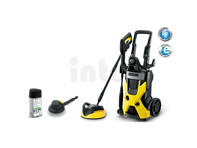 Vysokotlaký stroj K 5.610 T 250 s vodou chlazeným indukčním motorem pro delší životnost, nižší hmotnost a úsporu el. energie. Vyznamenán od institutu Fraunhofer s Efficiency Label. Včetně naplněné láhve s čisticím prostředkem (univerzální čistič) a novým čističem ploch T 250 a rotačním kartáčem.