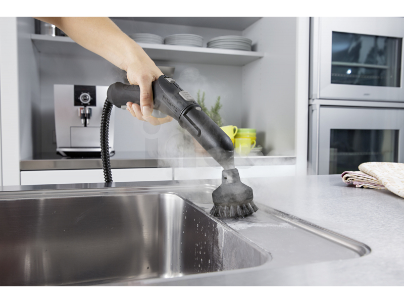 S max. tlakemm 4,2 bar disponuje stroj vysokou produkcí páry a zaručuje vynikající čisticí efekt. Účinně a přesto ekologicky lze odstraňovat vápenaté usazeniny, usazené mastnoty a jiné silné znečištění. Množství páry lze přizpůsobit pomocí plynulé regulace na parní pistoli čištěnému povrchu a stupni znečištění. Snadno srozumitelné prvky obsluhy, přihrádky na příslušenství či velká kolečka pro lehké přepravování, popř. dobrou manipulovatelnost stroje a permanentně doplňovatelná nádržka na čistou vodu nabízí vysoký komfort při práci.