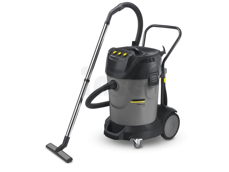 Vysavač průmyslový KÄRCHER NT 70/3 je profesionální, robustní, třímotorový stroj na vysávání mokrých a suchých nečistot a kapalin s objemem nádoby na nečistoty 70 l. Disponuje vysokým sacím výkonem sací turbíny o napájecím napětí 230 V. Plastová nádoba je umístěna na kvalitním podvozku, vzadu osazeným dvěma velkými koly pro snadnou manipulaci, dvěma předními, otočnými kolečky s pracovní brzdou a ergonomickým držákem pro jednoduché přemísťování stroje. Sací turbína je umístěna v sací hlavě stroje opatřené držákem na napájecí kabel a příslušenství, které se pohodlně umísťuje v zadní části stroje. Tamtéž je umístěna vypouštěcí hadice, kterou lze pohodlně a bezproblémově vypouštět vysáté kapaliny. Vysavač je opatřen kvalitní svíčkovou filtrační patronou s možností údržby a plovákovým spínačem, zabraňujícím přehlcení turbíny kapalinami. Jednoduchý ovládací spínač je umístěn v horní části sací hlavy vysavače. Na sací hlavě je také velká odkládací plocha na odložení nářadí.