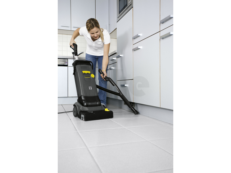 Použitou znečištěnou vodu odsává sací lišta umístěné ve spodní části stroje. Kryt a podvozek jsou vyrobeny z robustní umělé hmoty odolné proti nárazům, hrany jsou chráněné čtyřmi ochrannými válečky. Při koncipování stroje byl kladen velký důraz na jeho účelné a snadné ovládání obsluhou: válcový kartáč lze velmi rychle vyměnit; nádrže na čistou a špinavou vodu lze snadno vyjmout, aby se mohly naplnit, vyprázdnit či vyčistit. Madlo umožňuje jednoduchou manipulaci se strojem (11 kg).
