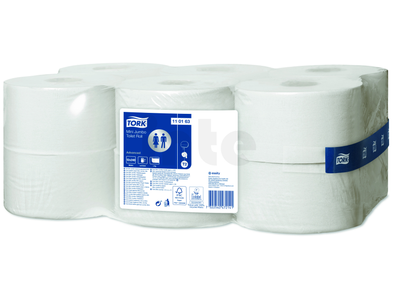 TORK toaletní papír Mini Jumbo role Advanced 1vrstvý nabízí skvělý poměr mezi náklady a kvalitou a je ideální pro provozovny se střední až vysokou návštěvností.