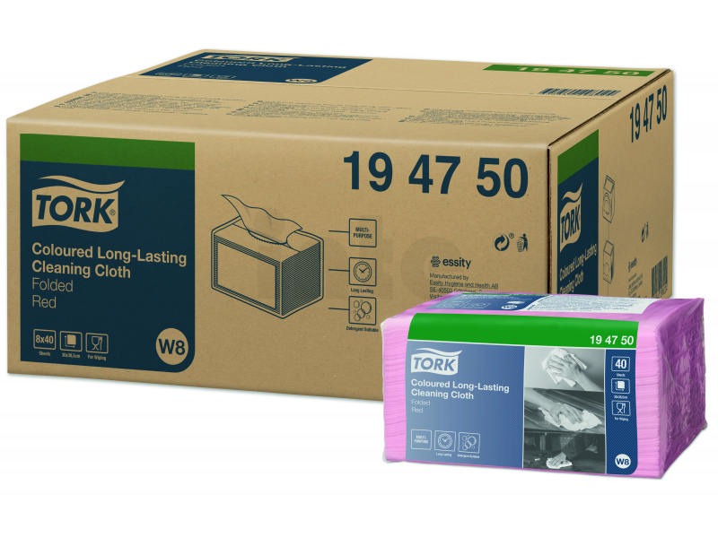 TORK utěrka barevný program, červená 8 balení, W8, 194750