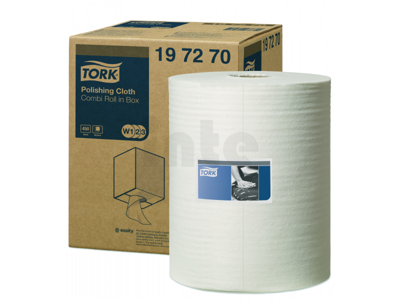 Jemná a flexibilní utěrka uvolňuje lešticí prostředek pro docílení profesionálního lesku bez zanechání jakýchkoli stop. Lze ji používat buď v TORK stojanech na podlahu či nástěnných zásobnících, které jsou navržené tak, aby zaručovaly bezpečnost, účinnost a spolehlivost, nebo v TORK Maxi zásobníku na role se středovým odvíjením či zásobníku na kombi role se středovým odvíjením v boxu, které jsou navrženy pro snazší dávkování jednou rukou.