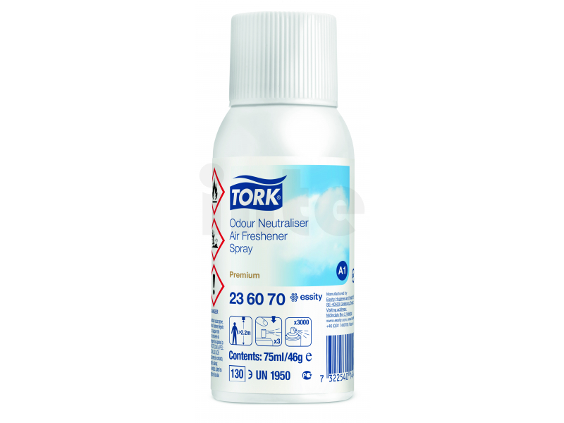 Spreje obsahují koncentrované vonné oleje a složky neutralizující pachy. Díky tomu eliminují nepříjemný zápach a nabízejí dlouhodobě svěží vzduch. Spreje jsou vhodné pro elektronický osvěžovač vzduchu TORK.