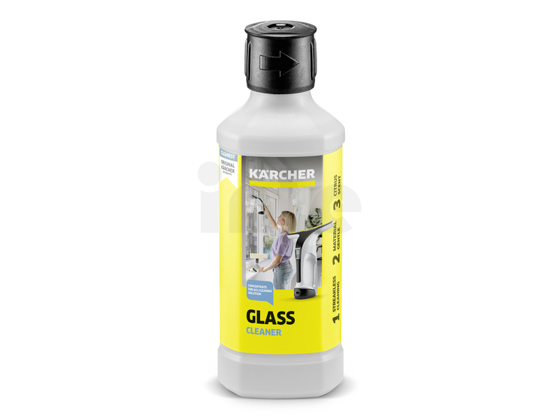 KÄRCHER Prostředek na čištění oken RM 500 Profi 500 ml se ředí v poměru 5 ml koncentrátu (půlka víčka)+ 220 ml vody. Před použitím je nutné důkladně protřepat lahvičku s čisticím prostředkem.