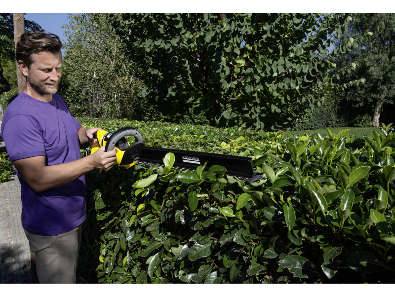 Silák pro perfektní stříhání: 36V bateriové plotové nůžky HGE 36-60 Battery od firmy Kärcher. Díky dvoustupňové regulaci rychlosti lze v závislosti na použití zvolit buď maximální rychlost, nebo maximální sílu. Navíc lze díky funkci řezání bez námahy řezat i silnější větve. Další vymožeností je rukojeť, která je v několika stupních otočná o 180° a zabraňuje únavě paží a ramen. Rovněž praktický: nasazovací sběrná lišta, který přesouvá ostříhané části živého plotu přímo na zem, místo aby padaly do živého plotu. Lišta plotových nůžek řezaná laserem a broušená diamantem zaručuje neustále přesný výsledek stříhání. Přídavný chránič špičky lišty zabraňuje jak poškození budov a země, tak i samotné lišty. A závěsné oko integrované v chrániči špičky lišty umožňuje prostorově úsporné uložení na zdi. Plotové nůžky jsou navíc vybavené antiblokovacím systémem pro práci bez přerušování.