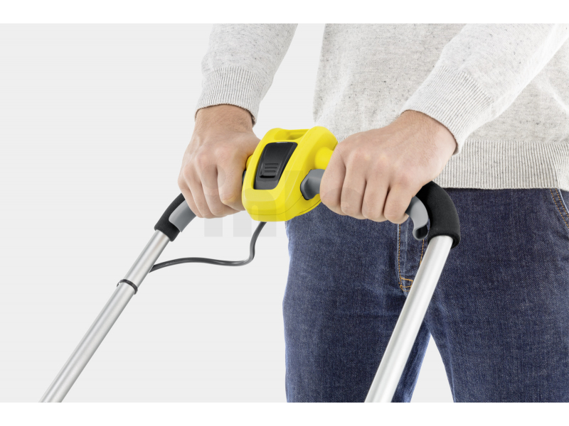 Podle přání lze žací výšku pohodlně nastavit ve čtyřech stupních na krytu sekačky. A aby bylo možné zaujmout pracovní postoj šetrný k zádům, dá se jednoduše přizpůsobit úhel vodicího držadla. Sekačka je vybavena ochranou (dětskou pojistkou) proti neúmyslnému spuštění.