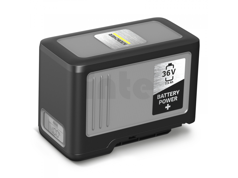 Lithium-iontová baterie Kärcher + 36 s kapacitou 7,5 Ah je vyvinuta pro čistící stroje Kärcher o platformě 36 V. Zaujme svým nestandardním výkonem, dlouhou dobou provozu, bezpečnostními prvky. Například efektivní řízení teploty zaručuje bezpečnou regulaci tepla baterie, tedy maximální bezpečnost i při nejvyšším výkonu baterie. Integrovaná kontrolka napětí s nadproudovou ochranou zabraňují poškození článků způsobeným přepětím, silným vybitím a nadměrným proudem. Inovativní Real Time Technology umožňuje uživatelům sledovat na LCD displeji přesné hodnoty na baterii: doba provozu, doba nabíjení a úroveň nabití.