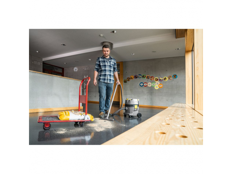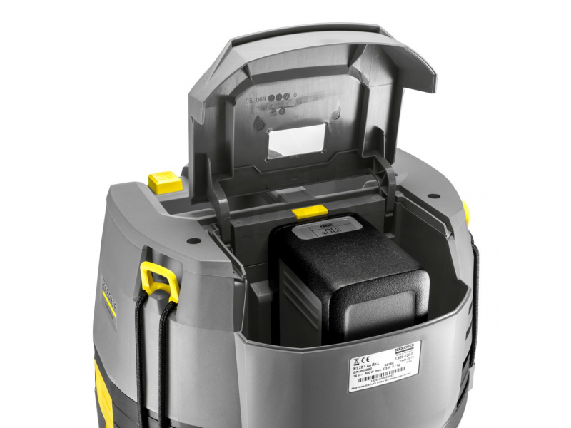 První AKU vysavač na mokré a suché vysávání pro profesionální využití od společnosti Kärcher je lehký, kompaktní, všestranný a zároveň výkonný. Díky silné baterii Kärcher Power+ zapůsobí tento průmyslový vysavač především na místech, kde chybí připojení k sítí. Je vhodný pro náročné mokré i suché nečistoty. Baterie je díky klapce chráněna před všemi nečistotami i tekutinami. Zajišťuje vysoký sací výkon a dlouhou dobu provozu. Tento multifunkční vysavač je vybaven prostorově úsporným plochým skládacím filtrem a elektronickým uzavíráním vody. Je proto vhodný pro vysávání kapalin, hrubých nečistot a jemného prachu. Díky svých kompaktním rozměrům a nízké hmotnosti je manipulace s ním velmi jednoduchá – zejména v těsných prostorech a silně frekventovaných oblastech. Praktická je plochá konstrukce hlavy stroje umožňující odkládací plochu.