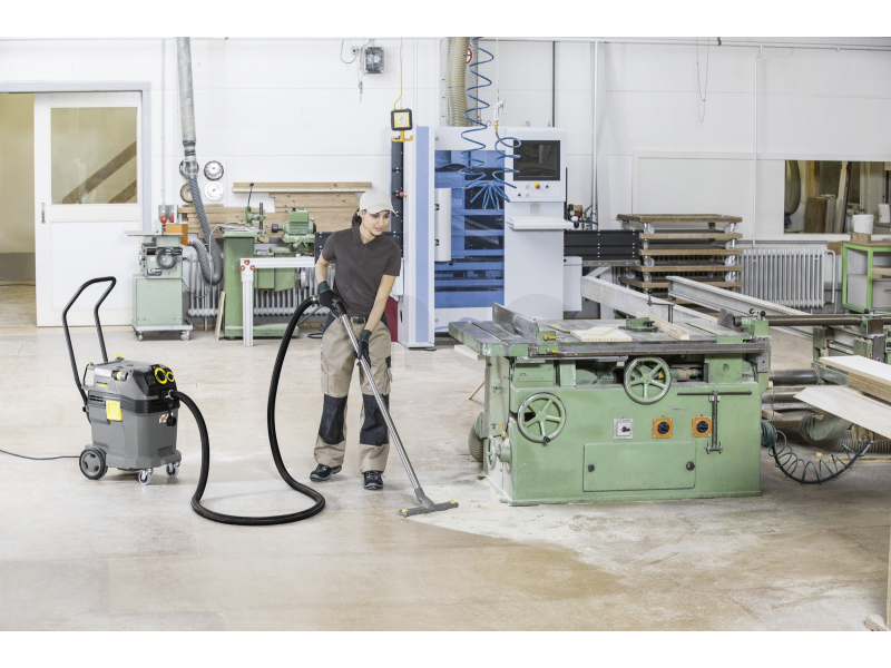 Velké množství dřeva a prachu rychle vede k ucpání klasických filtračních systémů. To není případ našeho kompaktního vysavače na mokré a suché nečistoty NT 40/1 Tact Te M, který byl navržen speciálně pro požadavky dřevozpracujícího průmyslu a dokáže zvládnout nebývalé množství dřevěného prachu se zaručenou filtrační účinností 99,9 procent při stejném čase. To je možné díky interakci nového patronového filtru s plně automatickým čištěním filtru a účinným sledováním a kontrolou čištění filtru a sacího výkonu pomocí elektroniky řízené čidly. Přímé vysávání elektrického nářadí vytvářejícího prach lze snadno provést také díky integrované zásuvce stroje s automatickým spuštěním a také kompletnímu antistatickému systému (vč. Vodivého příslušenství). NT 40/1 Tact Te M je také vybaven ergonomickou tlačnou rukojetí a robustní 40litrovou nádobou, a je proto vhodný pro použití v dílnách, truhlářství a průmyslových podnicích.