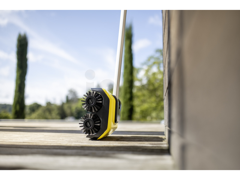 Objevte jednoduchost a efektivitu úklidu s KÄRCHER PCL 6 – elektricky poháněným čističem teras, který zvládne i ty nejnáročnější úkoly. Díky čtyřem vysoce kvalitním rotačním válečkovým kartáčům a integrovanému rozvodu vody bude vaše terasa dokonale čistá během okamžiku. Stačí připojit čistič k zahradní hadici a můžete začít.