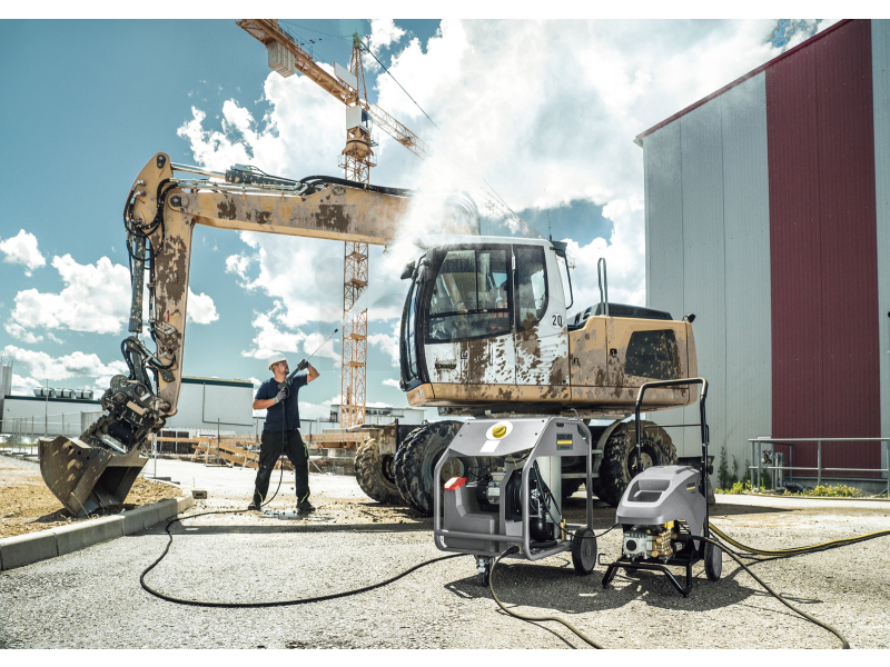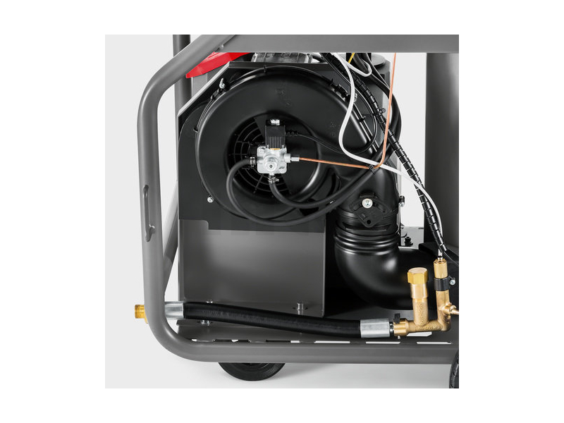 Generátor teplé vody KÄRCHER HG 43 díky účinné technologii hořáku s nízkými emisemi s topným výkonem 43 kW přemění všechny vysokotlaké čističe na efektivní vysokotlaké čističe s ohřevem. Generátor teplé vody HG 43 je kompatibilní s každým vysokotlakým čističem na trhu, ať už se jedná o stroj KÄRCHER nebo od jiného výrobce, stáří a výkon přitom nehrají roli. Teplá voda u vysokotlakých čističů šetří čisticí prostředky, výrazně urychlí a zlepší výsledek čištění a projeví své silné stránky především při odstraňování mastných a olejnatých nečistot a vrstev. Pracovní tlak lze snížit pro šetrné čištění citlivých povrchů při stejném výkonu čištění. Inovatívní technologie hořáku s výkonem 43 kW garantuje vysokou efektivnost při současně nízkých emisích. Osvědčená bezpečnostní technika s bezpečnostním blokem s tlakovým spínačem a pojistkou proti nedostatku vody a integrovaným tlumicím systémem na ochranu topného hadu před vibracemi se postará o dlouhou životnost. Všechny komponenty zařízení jsou konstruované pro nepřetržitý provoz, zatímco stabilní trubkový rám umožňuje používání i v náročných podmínkách.