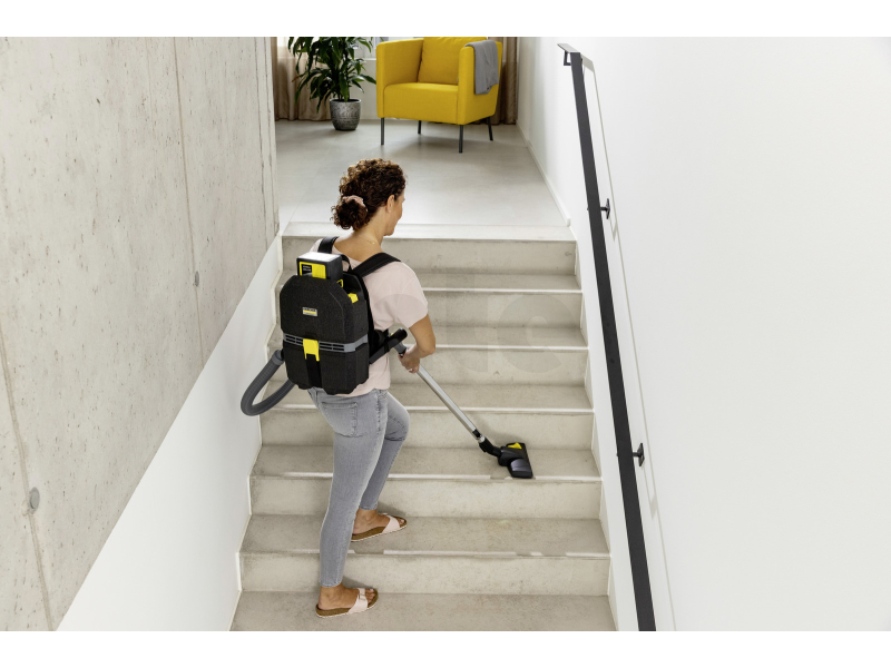 Bateriový zádový vysavač KÄRCHER BVL 3/1 Bp je první vysavač, který díky inovativnímu materiálu EPP (extrudovaný polypropylen) váží pouze 4,5 kg. Použitý materiál velmi dobře pohlcuje opakující se nárazy, je lehký, pevný, má velmi dobrou rozměrovou paměť a je odolný vůči vodě i běžným chemikáliím. Vysavač má objem nádoby na nečistoty 3 l je dodáván s baterii, která pohání bezuhlíkový motor o výkonu 350 W. Práci velmi usnadňuje ergonomický nosný rám, díky kterému uživatel vůbec nevnímá ani minimální hmotnost tohoto zádového vysavače. Ovládání vysavače je řešeno pomocí ovládacího panelu, který je umístěn na bederním popruhu a je tedy velmi dobře dostupný. Vysavač je vhodný pro použití praváky i leváky díky možnosti přepnutí sací hadice na obě strany. Vysavač disponuje režimem eco!efficiency, který snižuje potřebu energie, hlučnost vysavače a prodlužuje dobu chodu baterie. Provozní doba na jedno nabití baterie v režimu eco!efficiency je maximálně 52 minut pro 5,0 Ah baterii a 73 minut pro 7,5 Ah baterii. Ve standarním režimu to je maximálně 31 minut (5,0 Ah) a 41minut (7,5 Ah). Plná flexibilita v rámci 36V bateriové platformy Kärcher. Baterii lze využít i pro jiná zařízení pracující s 36 V baterií Kärcher, bez ohledu na to jestli se jedná o Hobbby či Profi zařízení. Vysavač je dodáván včetně příslušenství. Volitelně je možno také dokoupit velmi účinný HEPA 14 filtr. Baterie a nabíječka baterií nejsou součástí balení.