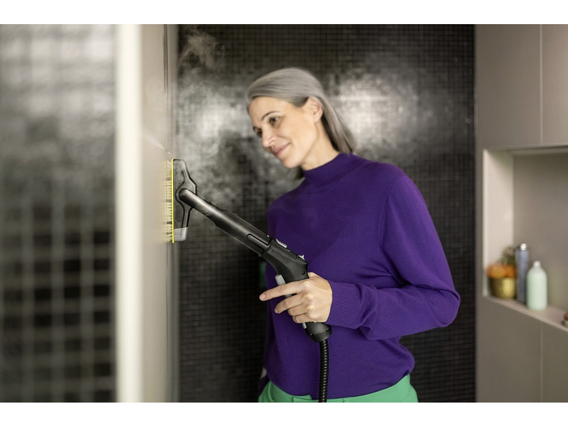 Flexibilní kloub umožňuje přizpůsobení různým úhlům, což usnadňuje čištění podlahových ploch při použití s prodlužovacími trubkami nebo přímo s parní pistolí.