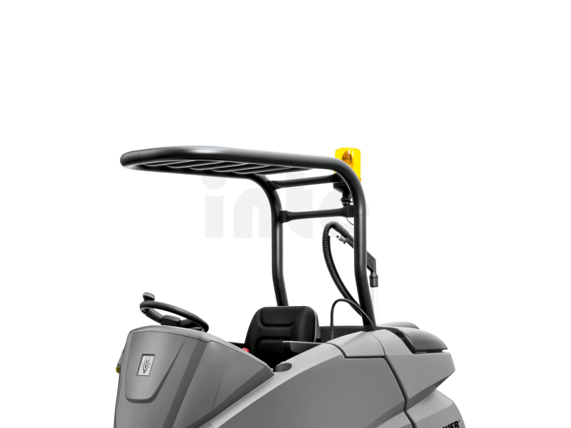 Padající objekty představují pro operátora skutečnou hrozbu. Naše pevná, vysoce kvalitní ochranná střecha, která je testována v souladu s EN IEC 60335-2-72, spolehlivě brání obsluhu před tímto nebezpečím, aniž by omezovala jeho pohled nebo svobodu pohybu. S ochrannou střechou činí výška pračky B 250 R celkem 2 170 milimetrů. Blikající majákové světlo je součástí dodávky.