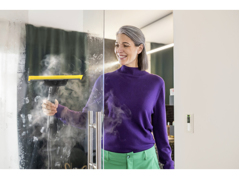 Okenní tryska Comfort usnadňuje čištění oken, zrcadel a dalších skleněných povrchů pomocí parního čističe. Díky dlouhé stírací liště z tekutého silikonu zajišťuje perfektní odstranění šmouh a stop i z těžko dostupných míst. Je ideálním řešením pro efektivní úklid bez použití chemických prostředků. Pružná stěrka umožňuje snadnou manipulaci a důkladné čištění, takže výsledkem je dokonale čistý a lesklý povrch.