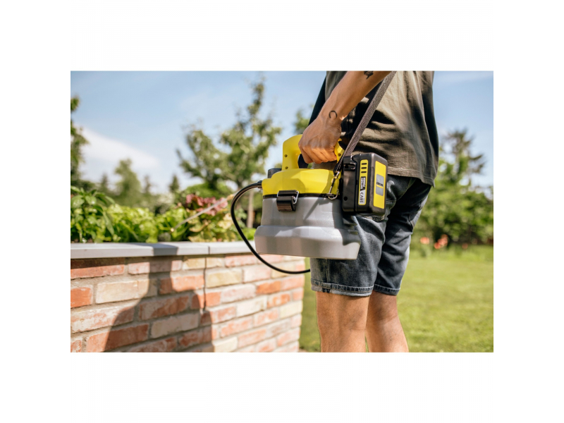 Bateriový ramenní postřikovač s nádobou o objemu 4 litry je vhodný pro základní postřik na zahradě a okolo domu. Postřikovač je dodáván bez baterie a nabíječky.