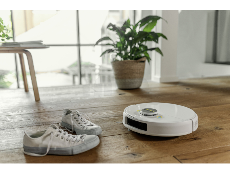 Chytrý robotický vysavač s mopem KÄRCHER RCV 5 samostatně a systematicky čistí tvrdé podlahy a koberce s nízkým vlasem Suché nečistoty jsou nasbírány do vestavěné nádoby na odpad rotačním kartáčem, bočním kartáčem na hrany a ventilátorem. Ultrazvukový senzor rozpozná koberce, které může vysavač vyčistit pomocí funkce Auto Boost pro maximální sací výkon. RCV 5 nejen vysává, ale dokáže i setřít prach pomocí nasazovacího mopu. V režimu mopování se vysavač kobercům automaticky vyhýbá. Prostřednictvím aplikace je RCV 5 při prvním použití vyslán na průzkumnou cestu a automaticky vytvoří mapu místností (LiDAR). Pro každou místnost lze nastavit individuální parametry úklidu. Například, které místnosti by se měly vysát, vytřít nebo naopak vůbec neuklízet. Díky duálnímu laserovému systému s naváděcí kamerou špičkový model RCV 5 také detekuje a vyhýbá se plochým překážkám, jako jsou kabely, ponožky nebo boty. Další senzory zabraňují pádu zařízení například ze schodů. Robotický vysavač RCV 5 můžete pohodlně spustit prostřednictvím mobilní aplikace, pomocí přednastaveného individuálního plánu nebo stisknutím tlačítka na ařízení. Pokud úklidový robot potřebuje pomoc, sdělí vám to prostřednictvím hlasového výstupu.