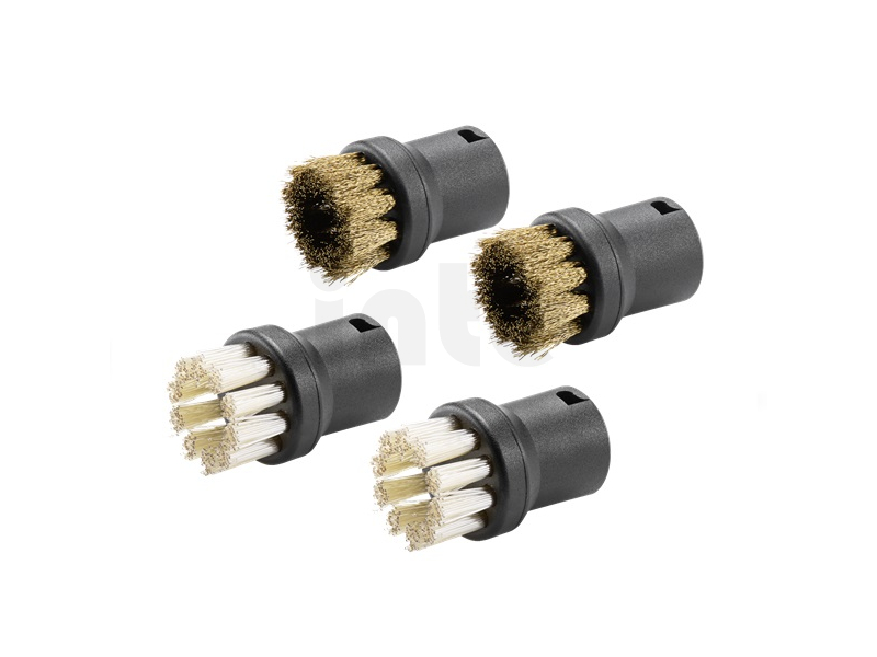 KÄRCHER sada kulatých kartáčků je perfektním doplňkem pro parní čističe. Sada obsahuje dva mosazné kartáče a dva silné kartáče, které se vyznačují mimořádnou čisticí silou. Odolné štětiny, které se pomalu opotřebovávají, si lehce poradí s odstraněním odolných nečistot, mastnoty a usazenin na roštech trouby, grilu nebo na varné desce. Tyto kartáče jsou ideální pro použití na nechoulostivých površích a díky své vysoké životnosti jsou spolehlivým pomocníkem při náročném čištění.
