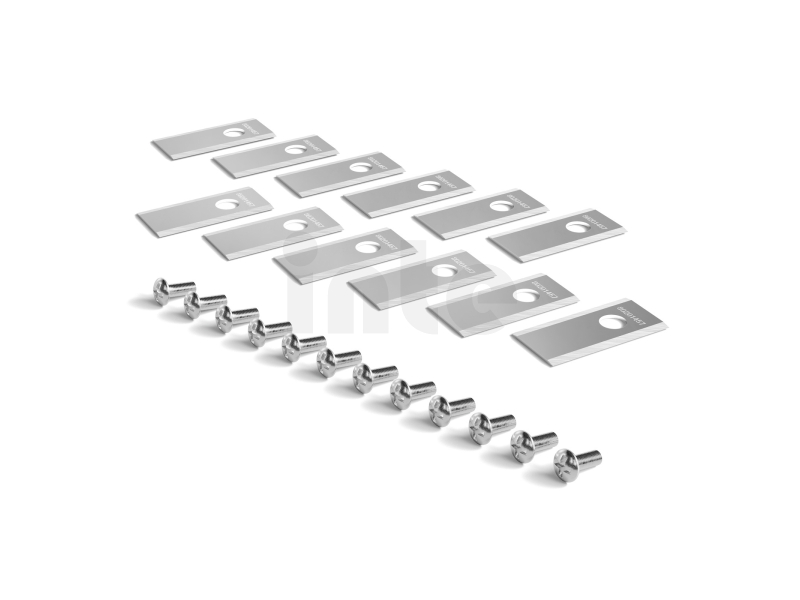 Pravidelná výměna nožů je nezbytná pro zachování optimálního výkonu sekačky a zdravého trávníku. Doporučuje se měnit nože každých jeden až dva měsíce. Sada obsahuje 12 náhradních nožů a 12 šroubů, které lze snadno vyměnit ručně, což vám umožní rychlou a efektivní údržbu s minimálními nároky na nářadí – stačí vám pouze šroubovák a pevné rukavice.