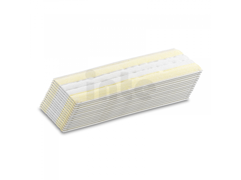 Sada 15 jednorázových utěrek k upnutí na podlahovou hubici EasyFix Mini pro rychlé a hygienické čištění tvrdých povrchů. Proužky žlutého suchého zipu umožní snadné připevnění utěrky k hubici.