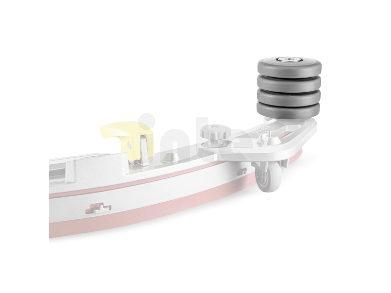 Speciálně vyvinutá sada nástavců s přídavnými deflektorovými válečky pro mycí stroje, které se často používají v obtížných podmínkách, např. když je málo místa na silně přeplněných plochách v supermarketech a při čištění překážek a stěn blízko okrajů, například ve výrobních halách nebo skladech. Podjížděné police, palety nebo vodicí lišty jsou typickými příklady, kdy hrozí zachycení nebo náraz sací lišty. K minimalizaci tohoto rizika Kärcher doporučuje použití těchto přídavných vodicích válečků nezanechávajících stopy. K tomu se jednoduše namontují na standardní vychylovací válečky na koncích sací lišty. Tím se zvyšuje výška sací lišty na jejích koncích přibližně na 16 centimetrů, což pomáhá předcházet poškození stroje a majetku.