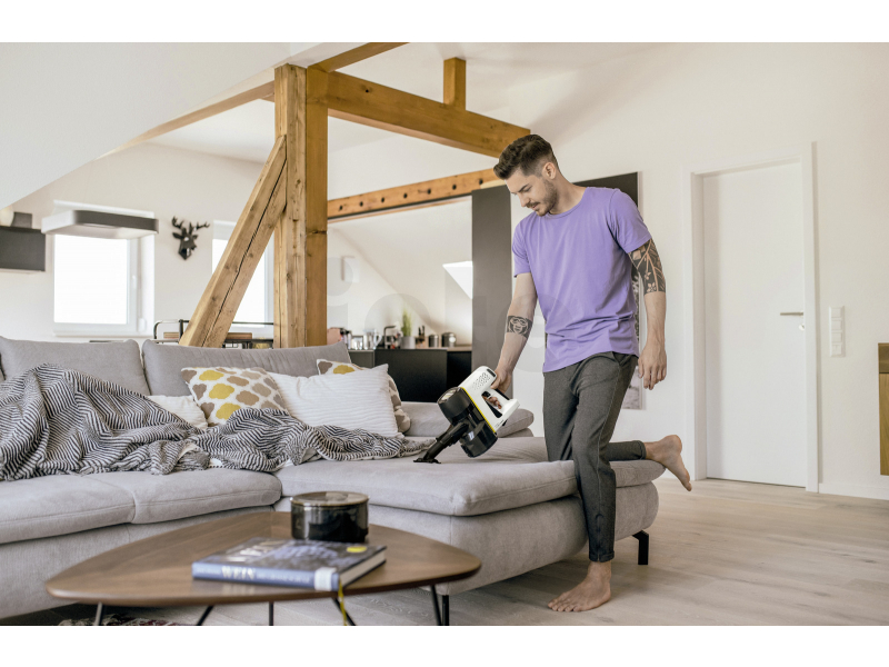 AKU tyčový vysavač KÄRCHER VC 4 Cordless Premium myHome s dobou chodu až 30 minut na jedno nabití. Jeho pečlivě promyšlený design a dodávaná úžší podlahová hubice zaručují, že dokáže vyčistit i těžko dostupná místa, např. podél pohovky nebo pod nábytkem. Součástí je i malý držák na zeď pro snažší uskladnění vysavače. Vysavač je vhodný pro vysávání menších domácností, případně jako druhý vysavač do domu, kde ho využijete například k vysávání schodů, případně pro rychlý každodenní úklid.